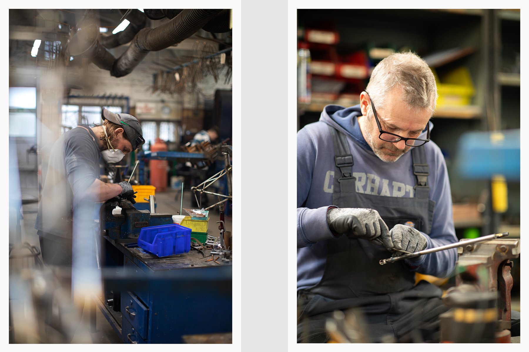 Working on a photographic project to showcase the best in design and British manufacturing, naturally then included some time at Moulton’s factory in Bradford-on-Avon. This led to some insightful conversations with both the Technical Director, Dan Farrell and Sales Director, Steven Harvey. (Dan is also an important local historian who has written a book on the town’s industrial past and the Moulton family’s pioneering rubber business.)